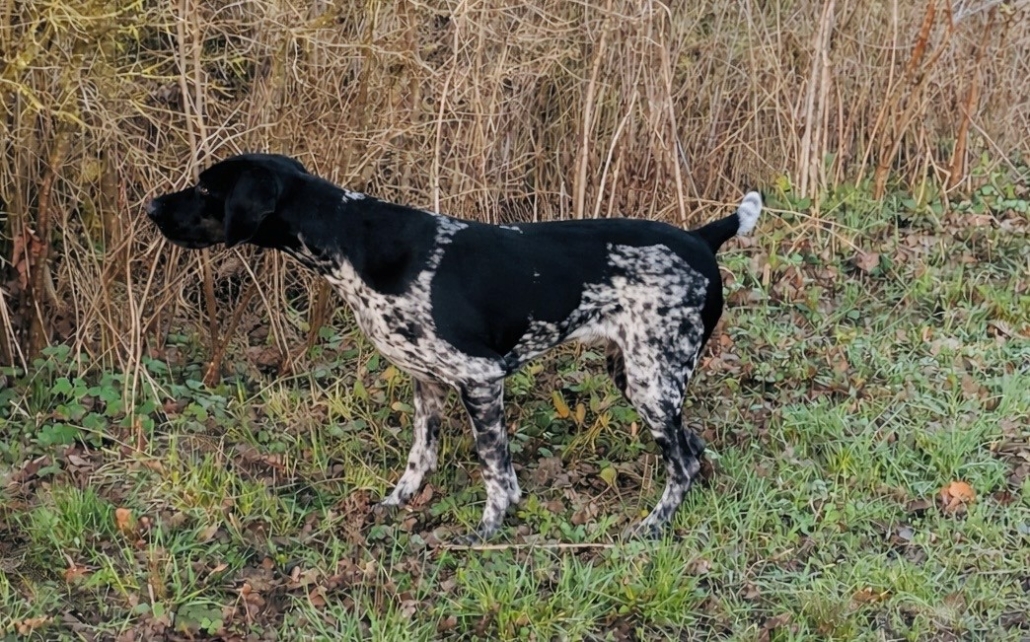ist eine Schwarzschimmel Hündin des unteren Mittelschlages,